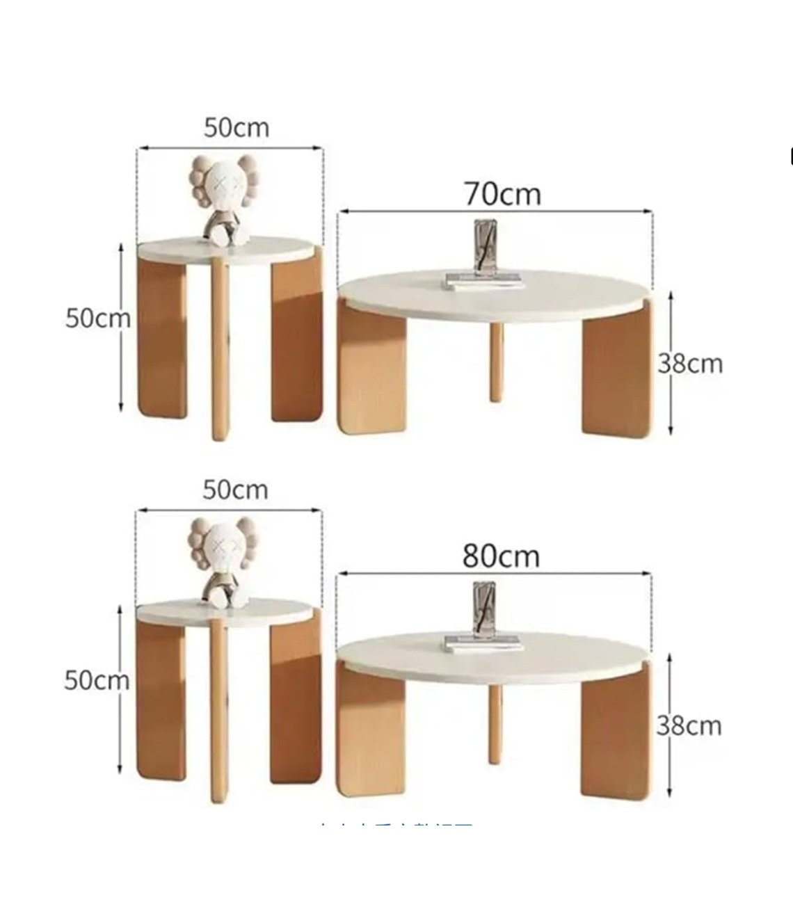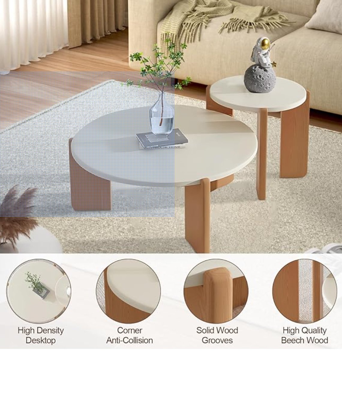 This 2-piece nesting coffee table set features a minimalist modern design, crafted from solid mountain ash wood with a creamy white finish. The set includes two round tables (50cm + 70cm or 50cm + 80cm), ideal for living rooms, home offices, and commercial spaces.